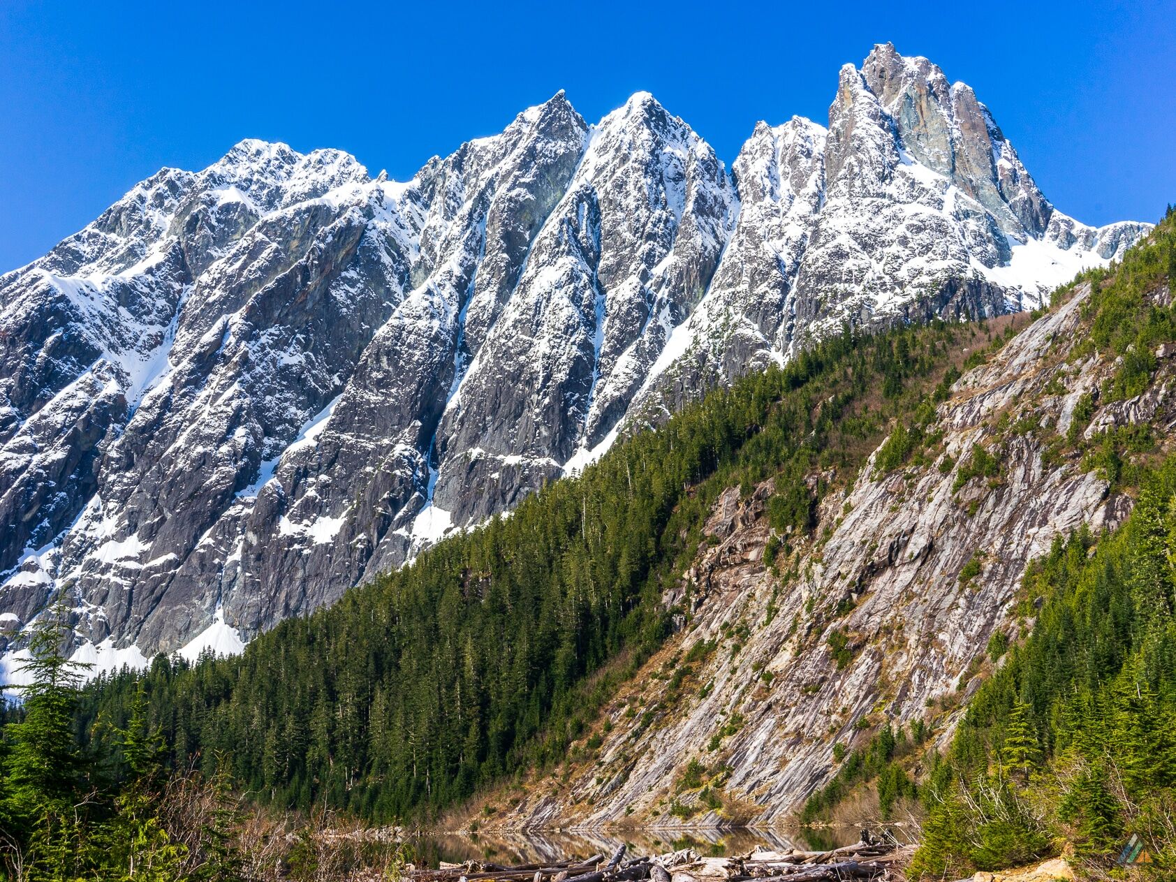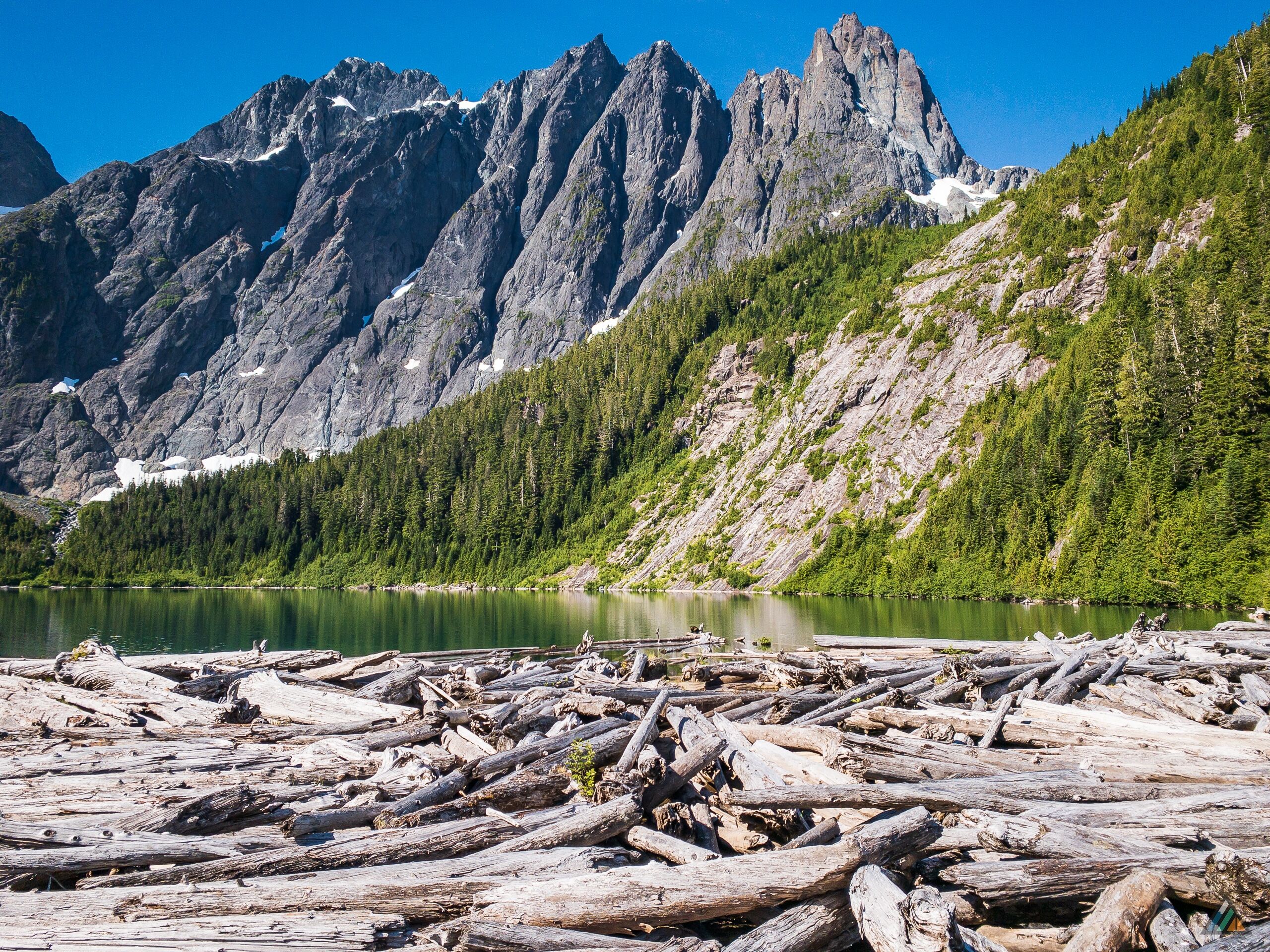 - Island alpine landscape. Strathcona Provincial Park contains endless natural features such as cold blue lakes, green forest valleys, snowy mountain peaks, waterfalls, glaciers, high ridges, granite domes, and basalt spires.